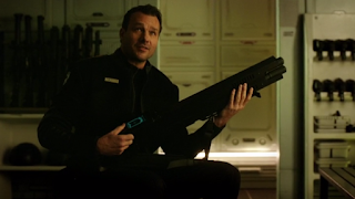 All of the crew got to shine during the escape but I loved that in all of it Five stopped to arm herself. She has certainly learned a lot and I was ridiculously excited when she acquired Bubba and went on a blasting spree with it. I’m fairly certain that gun is bigger than Jodelle Ferland, but that’s what made her choosing that all the more perfect to her evolution. After everything she’d endured she knew she was strong enough to handle it and she handled it like a boss. I think Two and Three would have been very proud of the way she used Bubba to clear a path for her, Android, Four, and Devon to make their dash to freedom.